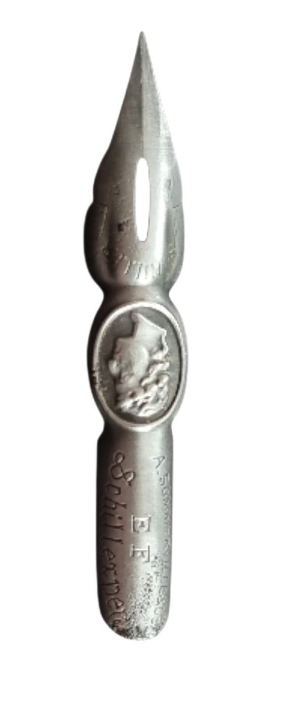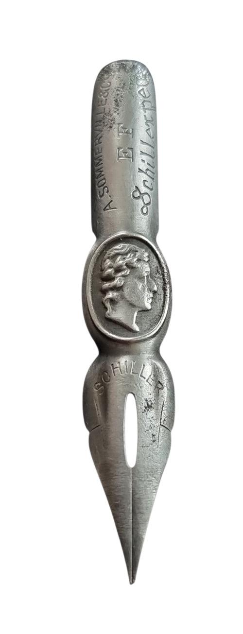 Dieses seltene Sammlerstück ist eine Spezialanfertigung von A. Sommerville zum 100. Todestag von Friedrich Schiller. Sie wurde nur in einer kleinen Menge produziert. Eine Portraitfeder aus Stahl mit dem Antlitz des Dichters Friedrich Schiller. Eine Rarität für Liebhaber und Sammler.