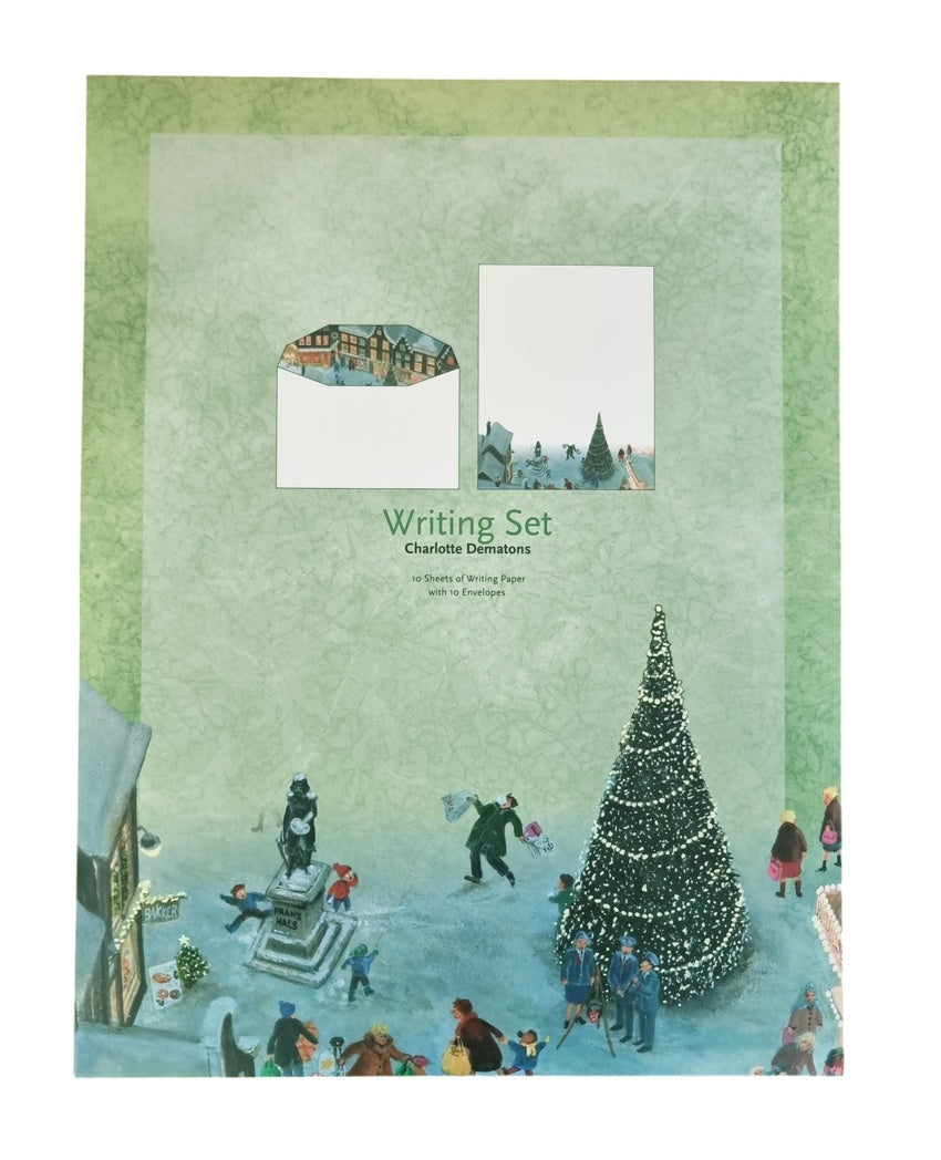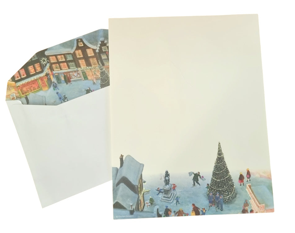 Dieses Briefpapier Set enthält 10 Bogen glattes Papier mit einem weihnachtlichen Motiv von Charlotte Dematons. Inklusive 10 Briefumschläge, die innen eine winterliche Straßenidylle zeigen. Entzücken Sie Ihre Lieben mit einem besinnlichen Gruß!