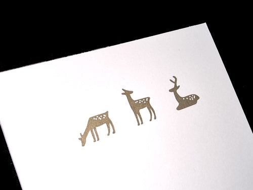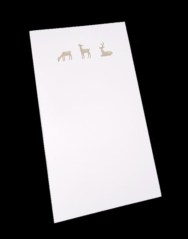 Der kleine Notizblock in rein-weiß mit Motiv RENTIERE in gold passt in die Tasche oder neben Ihr Telefon und bietet Platz für schnelle Notizen nebenbei. Die glatte Papierstruktur sorgt für ein angenehm fließendes Schreibgefühl – egal ob mit Füller, Stahlfeder oder Bleistift. Dank der hochwertigen Qualität blutet die Tinte nicht aus, selbst bei großzügigem Auftrag. Das Motiv wird im Letterpress Verfahren mit einer alten Heidelberg Druckpresse aufgedruckt.