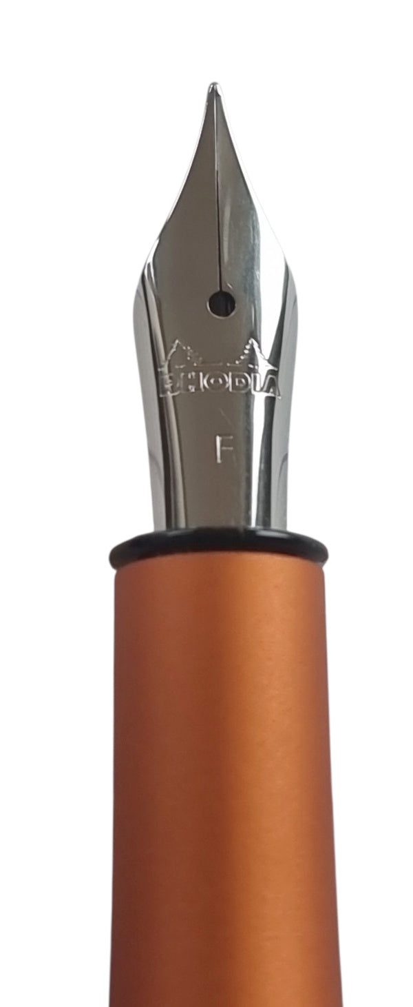 Der Rhodia Script Füllhalter Hexagon zeigt mit seiner 6-kant Form Charakter und ein zeitloses Design. Sein hexagonales Gehäuse aus Aluminium im Farbton Orange mit strichmattierter Oberfläche verleiht ihm eine sportliche und moderne Ausstrahlung. Die Iridiumfeder mit Kugelspitze sorgt für ein sanftes, präzises Schreibgefühl. Der Füller liegt leicht und kühl in der Hand. Nutzbar mit Konverter oder Patronen in Standard und Großraum. Ein anspruchsvoller Begleiter für alle, die außergewöhnliche Schreibgeräte schätzen. Wahlweise auch mit Stiftetui von Rhodia in schwarz.
