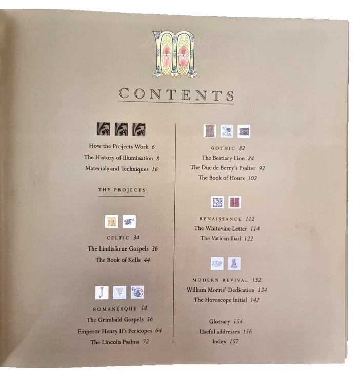 An introduction to the history and tools of illumination. Guidance on techniques such as decoration, gilding and coloring. Step-by-Step instructions for creating twelve classic alphabets: Celtic - Late Celtic - Anglo-Saxon - Ottonian - Romanesque - Early Gothic - High Gothic - Realism -White Vine - Renaissance - Arts and Crafts - Modern Revival.